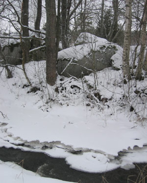 Kuva Pehdonkosken perinnebiotoopilla sijaitsevasta luonnontilaisesta purosta.